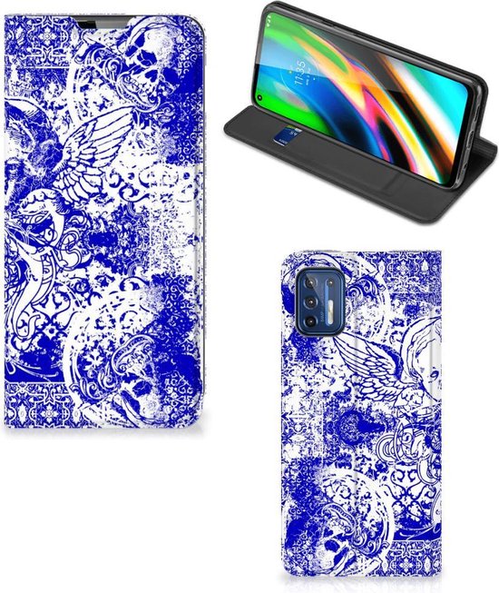 Coque Smartphone Motorola Moto G9 Plus Book Style Case Angel Skull Blue Convient pour Motorola Moto G9 Plus