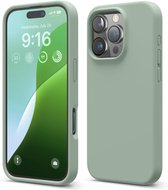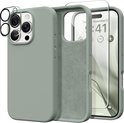 Coque Solid en silicone liquide souple au toucher et caoutchouc TPU Flexible + protection d'écran - Objectif de l'appareil photo - Compatible avec : iPhone 16 Pro - Vert nuit