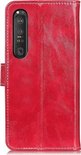 Coque Sony Xperia 1 III - Mobigear - Série Basic - Bookcase en similicuir - Rouge - Housse adaptée pour Sony Xperia 1 III