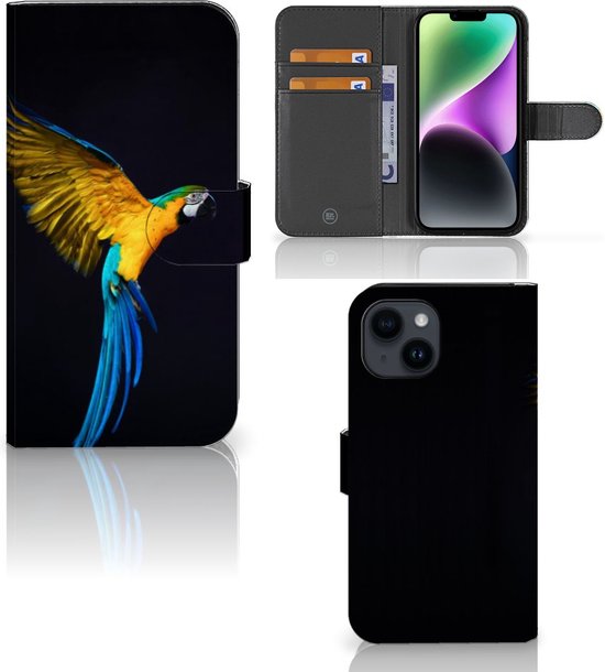 Coque Téléphone iPhone 15 Housse en Cuir Premium Flip Case Portefeuille Etui pour Perroquet