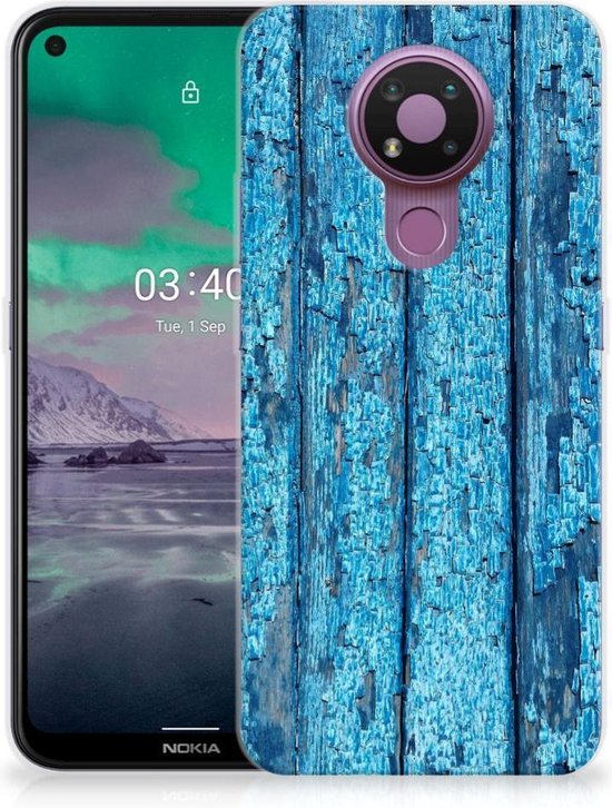 Coque Téléphone pour Nokia 3.4 Housse Coque Bois Bleu