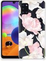 Coque Téléphone pour Samsung Galaxy A31 PU Silicone Etui Bumper Gel Fleur Mauve Convient pour Samsung Galaxy A31