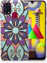 Coque Téléphone pour Samsung Galaxy A31 PU Silicone Etui Bumper Gel Fleur Mauve