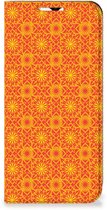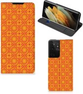 Coque Téléphone Samsung Galaxy S22 Ultra Wallet Case Batik Orange Convient pour Samsung Galaxy S22 Ultra