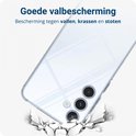 La coque transparente est fabriquée en matériau TPU extrêmement flexible. Malgré leur flexibilité, ces types de couvertures sont très solides et même résistants à la graisse et à l'huile. La coque en TPU est également conçue de telle manière que la coque se replie sur les bords de votre Samsung Galaxy A55. De cette façon, les gouttes sont absorbées au maximum par les coins renforcés du boîtier.