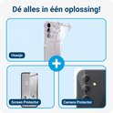 Offrez à votre Samsung Galaxy A55 une protection complète à 360 degrés avec cet ensemble. Cet ensemble se compose d'une coque arrière transparente, d'un protecteur d'écran en verre trempé 9H et d'un protecteur d'appareil photo. Vous protégez ainsi à la fois l'avant et l'arrière de votre téléphone, où le design original de votre Samsung Galaxy A55 est accentué par le design transparent.
