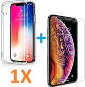 Coque transparente pour iPhone Xs / X Coque en Siliconen TPU souple + protecteur d'écran en Tempered Glass trempé