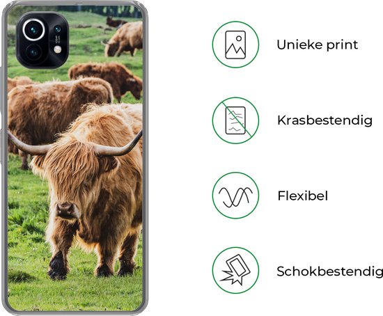 Coque Xiaomi Mi 11 - Highlanders écossais - Animaux - Herbe - Coque de téléphone en Siliconen