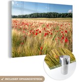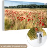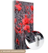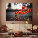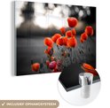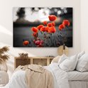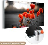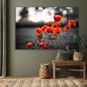 Coquelicots rouges sauvages dans un grand champ avec un fond noir et blanc Plexiglas 180x120 cm - Tirage photo sur Glas (décoration murale plexiglas) XXL / Groot format!