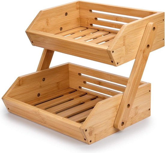- Corbeille à fruits en bambou à 2 niveaux : le design à 2 niveaux est très pratique pour sortir vos affaires. C'est la solution parfaite pour le rangement quotidien et permet d'économiser de l'espace. Votre cuisine et votre salle à manger sont bien organisées et bien rangées. La corbeille à fruits à 2 niveaux est suffisamment grande pour stocker une variété d'articles.