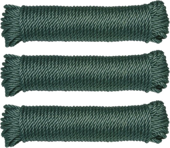 3x Corde paracorde verte AMIG, composée de 4 brins de polypropylène tissé, d'un diamètre de 5 mm, avec une force de traction de 110 kg. Cette corde paracorde convient à une infinité d'applications. Utilisez-le, par exemple, pour accrocher un hamac, pour tendre des voiles, comme corde de balançoire ou pour la pêche magnétique.