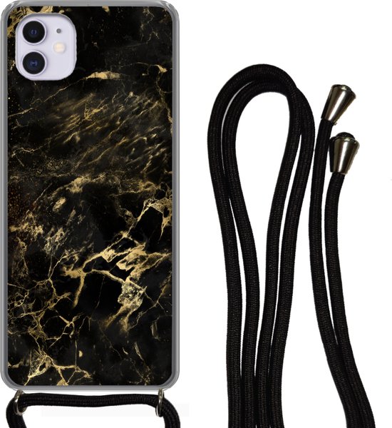 Cordon de téléphone - Chaîne de téléphone - Coque avec cordon iPhone 11 - Zwart - Or - Peinture - Siliconen - Bandoulière - Coque de téléphone avec cordon