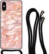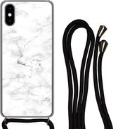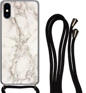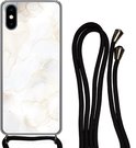 Cordon de téléphone - Chaîne de téléphone - Coque avec cordon iPhone X - Marbre - Wit - Jaune - Siliconen - Bandoulière - Coque de téléphone avec cordon