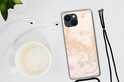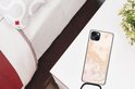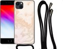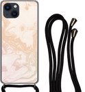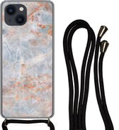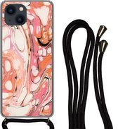 Cordon téléphonique - Chaîne téléphonique - Coque avec cordon iPhone 13 Mini - Marbre - Oranje - Wit - Siliconen - Bandoulière - Coque pour téléphone avec cordon