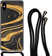 Cordon téléphonique - Chaîne téléphonique - Étui avec cordon Adapté pour iPhone XS - Imprimé marbre - Jaune - Motifs - Siliconen - Bandoulière - Étui téléphone avec cordon