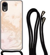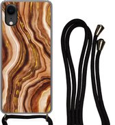 Cordon téléphonique - Chaîne téléphonique - Étui avec cordon Convient pour iPhone XR - Imprimé marbre - Oranje - Pierre - Siliconen - Bandoulière - Étui de téléphone avec cordon