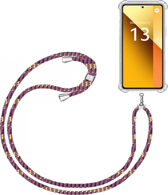 Cordon téléphonique + Étui Adapté pour Xiaomi Redmi Note 13 4G - Longueur Ajustable - Chaîne de téléphone - Étui Antichoc - Violet