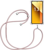 Cordon téléphonique + Étui Adapté pour Xiaomi Redmi Note 13 4G - Longueur Ajustable - Chaîne de téléphone - Étui Antichoc - Rose
