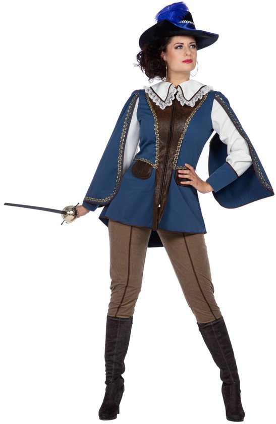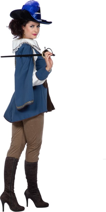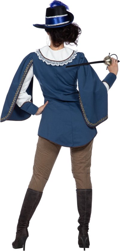 - Costume de Dame Mousquetaire Blauw - Tailles disponibles : Taille 36 à 48 - Composé de : Pantalon et veste - Matière : Polyester Hors accessoires !