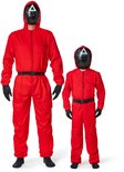 L'ensemble comprend une combinaison rouge avec une capuche, un masque noir avec des détails blancs, des gants et une ceinture. Idéal pour ceux qui veulent faire bonne impression lors du carnaval, d'Halloween, de soirées à thème ou d'événements cosplay . Le costume est également disponible en taille enfant, sympa comme outfit père-fils !