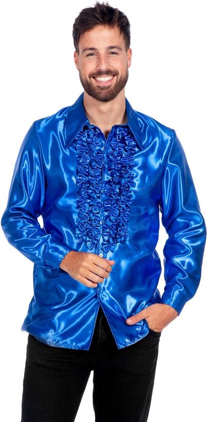 Costume des années 80 et 90 | Chemisier Bleu à Volants Satin Wrong Disco | Taille 48 | Costume de carnaval | Déguisements
