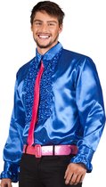 Costume des années 80 et 90 | Chemisier Bleu à Volants Satin Wrong Disco | Taille 58 | Costume de carnaval | Déguisements