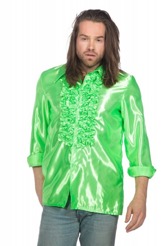 Costume des années 80 et 90 | Chemisier vert à volants en satin Wrong Neon Disco | Taille 52 | Costume de carnaval | Déguisements
