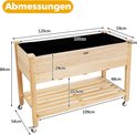 COSTWAY Jardinière surélevée avec étagère et roulettes, jardinière surélevée en bois, jardinière avec roulettes verrouillables et film de protection, grand bac à légumes, bac à herbes, pour balcon, jardin, terrasse