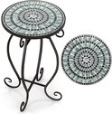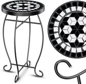 COSTWAY Table d'appoint, table mosaïque, ronde, mosaïque, table de jardin, table bistrot, diamètre 30 x 50 cm, table de balcon en métal et céramique, tabouret de fleurs pour balcon, terrasse et jardin (noir + gris)