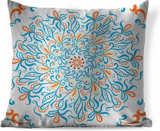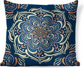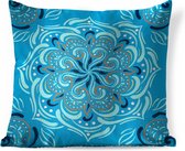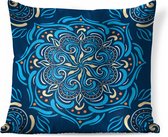 Coussins Coussins décoratifs - Coussin - Motif carré avec un mandala bleu et décoré sur fond clair - 60x60 cm - Coussin en coton