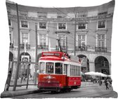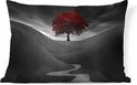 Coussins Coussins décoratifs - Coussin - Photo Zwart et blanc avec un arbre rouge - 50x30 cm - Coussin en coton