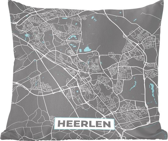 Coussins Coussins décoratifs - Oreillers Salon - 50x50 cm - Carte - Heerlen - Grijs - Blauw - Plan de la ville