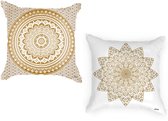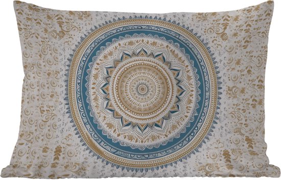 Coussins d'extérieur - Mandala - Blauw - Bohème - Wit - Design - 60x40 cm - Résistant aux intempéries