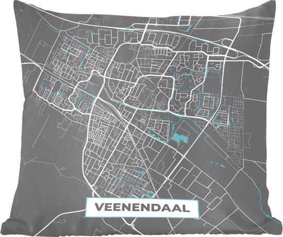 Coussins décoratifs - Oreillers Coussins décoratifs - Carte - Veenendaal - Grijs - Blauw - Plan de la ville