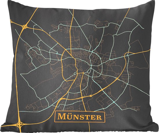 Coussins décoratifs - Oreillers Salon - 60x60 cm - Carte - Münster - Allemagne - Or - Zwart