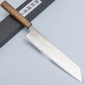 Conçu dans la ville de Seki , la Mecque de l'industrie japonaise du couteau, ce couteau de chef témoigne d'une qualité inégalée. Avec une lame de 20 cm composée de 37 couches d'acier damassé autour d'un noyau dur VG10, ce couteau offre une expérience de coupe comme vous n'en avez jamais connue auparavant. La dureté de 61 HRC garantit un tranchant exceptionnel et durable, vous permettant d'effectuer des tâches de coupe sans effort et avec la plus grande précision.