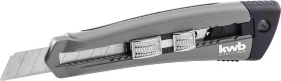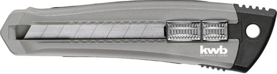 kwb Professioneel afbreekmes met autoloadfunctie, 185 mm 015618 1 stuk(s)Handwerkkwaliteit, met 3 stuks 18mm-afbreekmesjes, 2 reservemesjes in het mesmagazijn, mesgeleiding van robuust roestvrij staal, autoloadfunctie, eenvoudig verwijderen van het verbruikte mes en automatisch bijladen uit het mesmagazijn, schuifknop met vergrendelingsfunctie voor veilig werken, ergonomisch gevormde behuizing van spuitgietzink met slipvast greepoppervlak, 165 mm lengte.