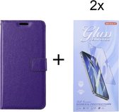 Motorola Moto G82 5G cover book case + 2 pièces Glas Screen Protector violet