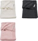 La couverture bébé noeuds Meyco est une couverture bébé tricotée en 100% coton et merveilleusement douce. Grâce à l'utilisation de 100% coton, la couverture est respirante et sûre, mais surtout confortable pour dormir sous. Les clous 3D sont subtils et donnent à la couverture un aspect contemporain, mais aussi luxueux. Et si votre tout-petit a grandi hors du berceau, cette couverture peut être placée sur le canapé ou comme plaid sur le lit.