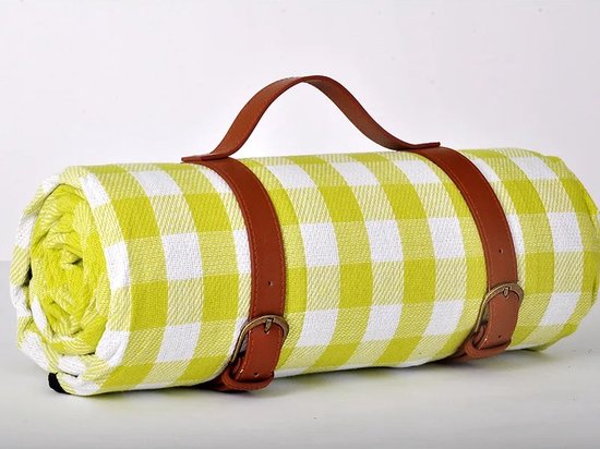 Couverture de pique-nique 200x200cm - Imperméable - Serviette de plage - Tapis de pique-nique - Couverture de pique-nique - Tissu de plage - Doux et confortable - Jaune | Blanc | Bloqué