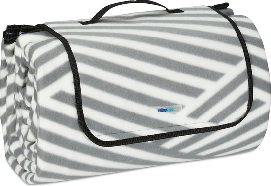 Couverture de pique-nique 200x300 cm XXL polaire imperméable pliable gris blanc manche aluminium rayures