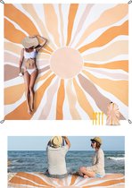 Couverture de plage sans sable 280 x 300 cm, imperméable, couverture de pique-nique pour 4 à 8 personnes, légère et portable, tapis de plage avec 4 piquets et 4 poches d'angle, couverture outdoor pour la randonnée, les voyages, le camping, le soleil.