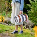 Enfin une jolie couverture de pique-nique, je suis immédiatement tombée sous le charme de la couleur et du design. La structure du tissu extérieur est laineuse mais densément tissée, ce qui est important pour moi. C'est vraiment très soigné et droit. Je trouve les sangles fournies faciles à accrocher au guidon de votre vélo. C'est dommage qu'il ait un dos étanche, on aurait envie de l'utiliser en intérieur.