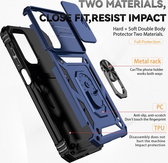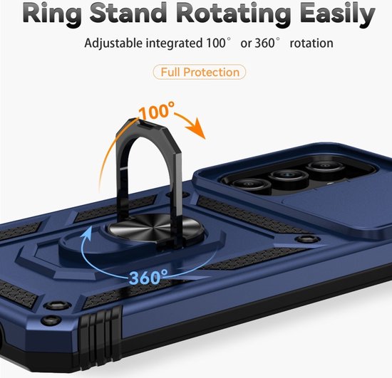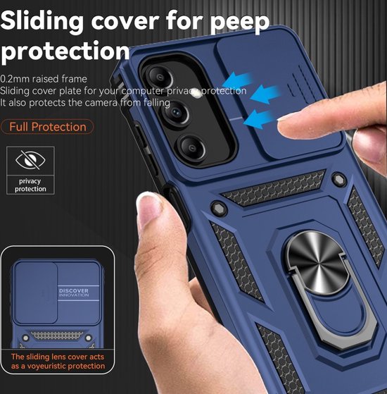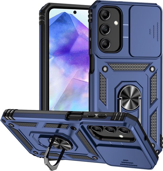 Coverup Ring Kickstand Couverture Arrière Avec Shield De Caméra Adapté Pour Samsung Galaxy A35 Case - Blauw