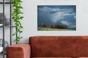 La photo est imprimée sur une toile robuste de 260 grammes de 0,41 mm d'épaisseur. Le lin est tendu étroitement sur un cadre en bois de deux centimètres d'épaisseur. Ce cadre en bois est en bois de pin certifié PEFC de qualité. Un système de suspension peut être commandé en option avec le produit pour fixer facilement l'impression au mur.
