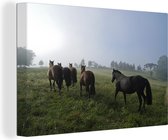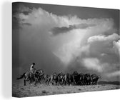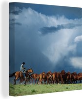 Cowboy mène troupeau de chevaux toile 2cm 60x40 cm - Tirage photo sur toile (Décoration murale salon / chambre) / Animaux de la ferme Peintures sur toile