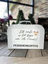 Quelle originalité que cette valise de pension ! Perfect pour le collègue, l’ami ou le membre de la famille qui prend sa retraite. Remplissez la valise entièrement à wens avec, par exemple, une bonne liqueur, des cadeaux, un chèque cadeau, des notes, des photos, de belles anecdotes, etc. Cela créera un souvenir inoubliable...