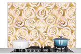 Crédence de Cuisine - Plaque de cuisson murale - Réchaud à crédence - 120x80 cm - Marbre - Or rose - Luxe - Motifs - Aluminium - Décoration murale - Protecteur mural - Résistant à la chaleur