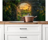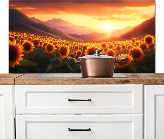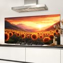 Crédence de Cuisinière en Aluminium 120x60 cm - Tournesols - Coucher de soleil - Paysage - Écran Pare-éclaboussures pour Plaque de Cuisson - Protection Murale