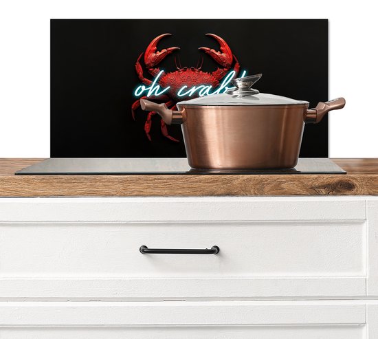 Crédence de Cuisinière en Aluminium 60x30 cm - Crabe - Rouge - Néon - Citation - Écran Pare-éclaboussures pour Plaque de Cuisson - Protection Murale